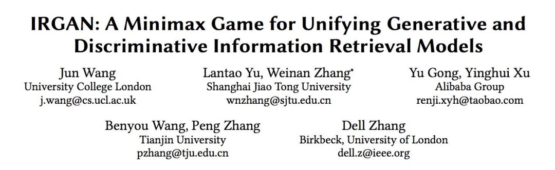 SIGIR2017 满分论文:IRGAN | 每周一起读(http://mp.weixin.qq.com/s/UV2mZUtt0xEyKAdhYLgZ2A)