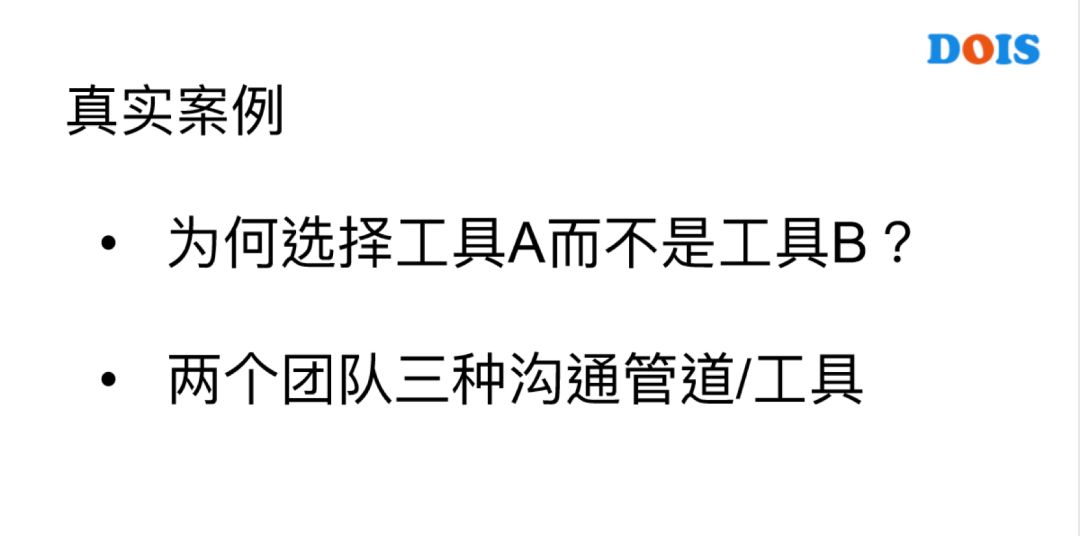 所以为何选择工具A而不是工具B,有时候不只是因为技术选型的缘故。另外的案例就是明明只是两个团队却使用了三种沟通管道或工具,我实在不知道这两个团队到底是要怎么有效沟通,这是一个很恐怖的状况,这也是常见的误区。