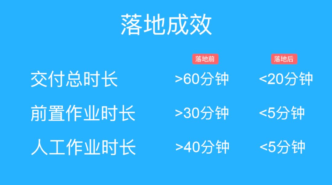 最后一个就是人工作业时长,原本大于40分钟,自动化以后在效率上提升了很多。