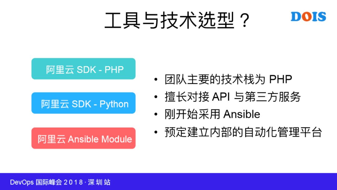 在这样的情况之下,有三个选项,你会选用阿里云的 SDK-PHP,或者说阿里云SDK-python,还有就是阿里云的 Ansible Module,你会选哪一个呢?