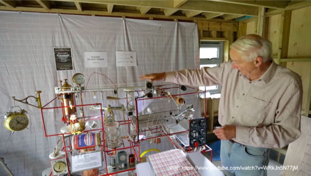 这是国外一位老先生自己做了一个自动早餐机,非常原始的机械结构,这也是一种自动化。