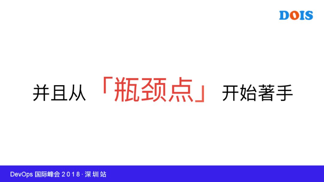 举个例子,我们最初在整个开发过程当中,最早是从部署阶段开始改进,优化完毕之后接著继续检视下一个瓶颈点是什么并接手继续改进,接著发现自动化测试的时候会遇到一些问题,于是改进了测试环节,接著又发现其实在一开始建立项目的时候其实有非常多的工作是需要手工去慢慢完成设置的,所以我们又要在自动化中修正这一部分,就是这样一步又一步的持续改进最有价值的部份。