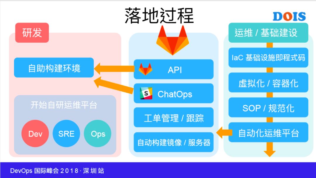 所以这个是一个蛮奇妙的落地过程,就是从运维开始,运维做了一个简单的平台,但渐渐发现不够用,大家想要更多、更棒的平台,而且不止是运维这边想要,研发那边也想要,最后连研发都一起跳进来说一起来开发一个更好的自动化平台。