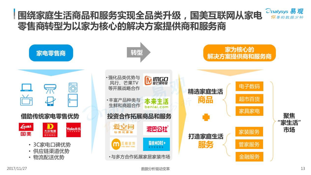 本内容通过聚焦国美互联网“家·生活”消费场景布局的背景,对国美互联网在“新零售”趋势下的战略方针进行详细分析,并对国美互联网的用户消费特征、“家·生活”全景消费趋势做出解读。