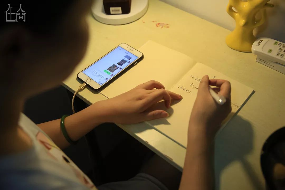 ■ 夜幕降临后,王燕茹在自己的房间,拿出笔和本子写举报信。