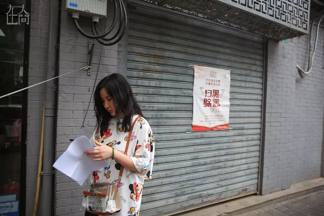 ■ 王燕茹走访公安部信访接待室后,在路上整理资料。