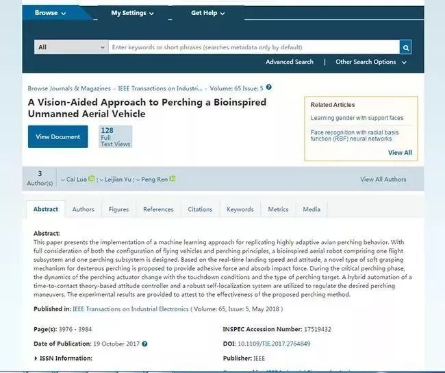 中国石油大学机电工程学院讲师罗偲、信息与控制工程学院教授任鹏在仿生无人机视觉导航研究领域的最新成果《基于视觉辅助的仿生无人机着陆控制研究》(AVision-aided Approach to Perching a Bio-inspired Unmanned Aerial Vehicle)刊发在了《电气和电子工程师协会工业电子会刊》(IEEE Transactions on Industrial Electronics)。