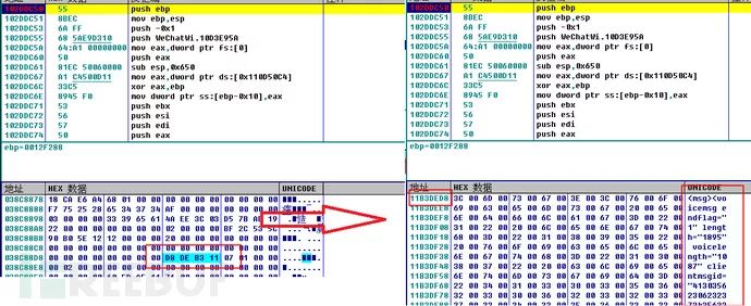 继续往上回溯了3层左右,进入了102DDC50,找到了语音消息的新信息。