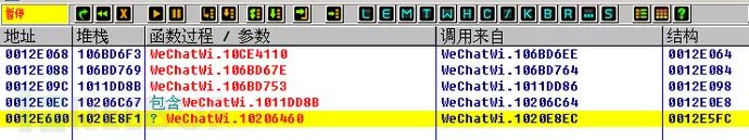 0012E09C 1011DD8B WeChatWi.106BD753 WeChatWi.1011DD86 0012E098