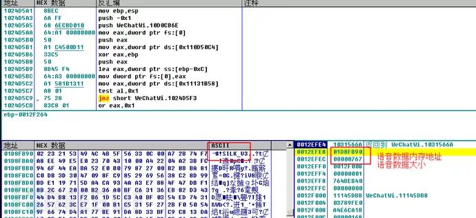 找到了解析语音xml数据和解码语音数据的关键函数。