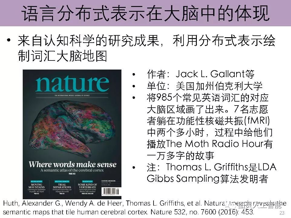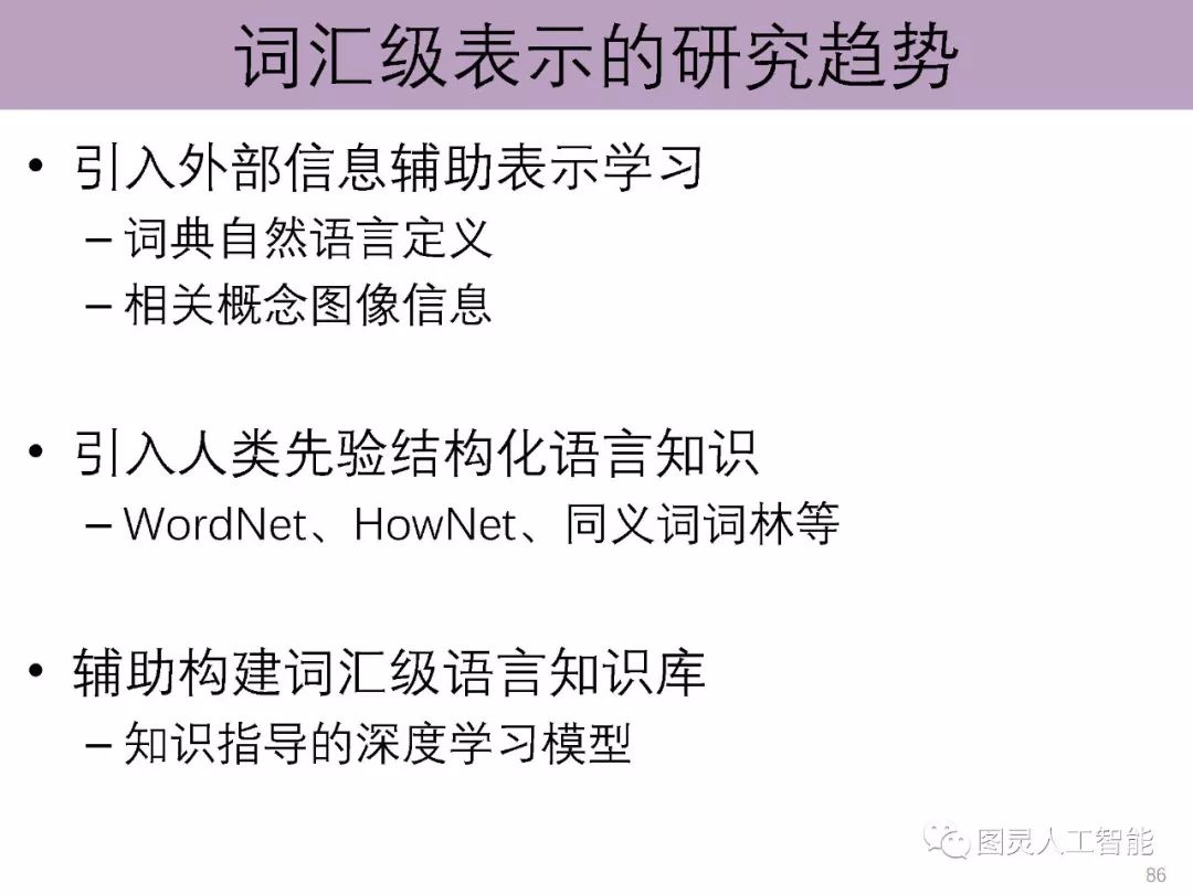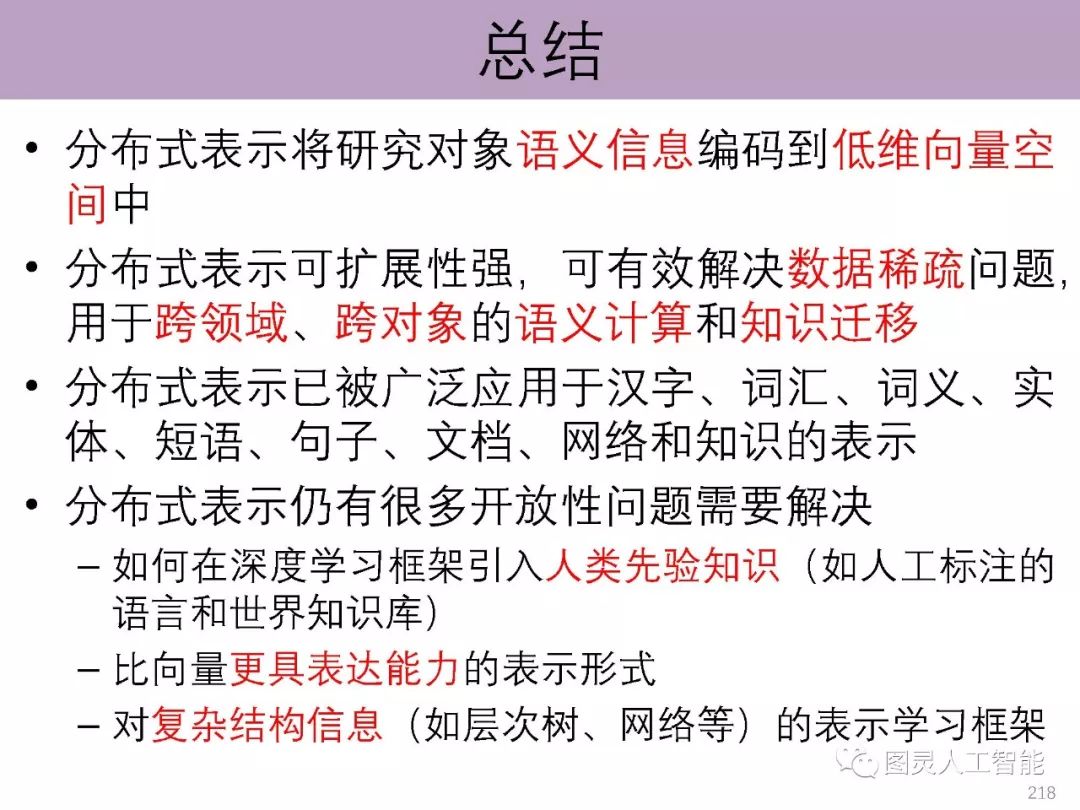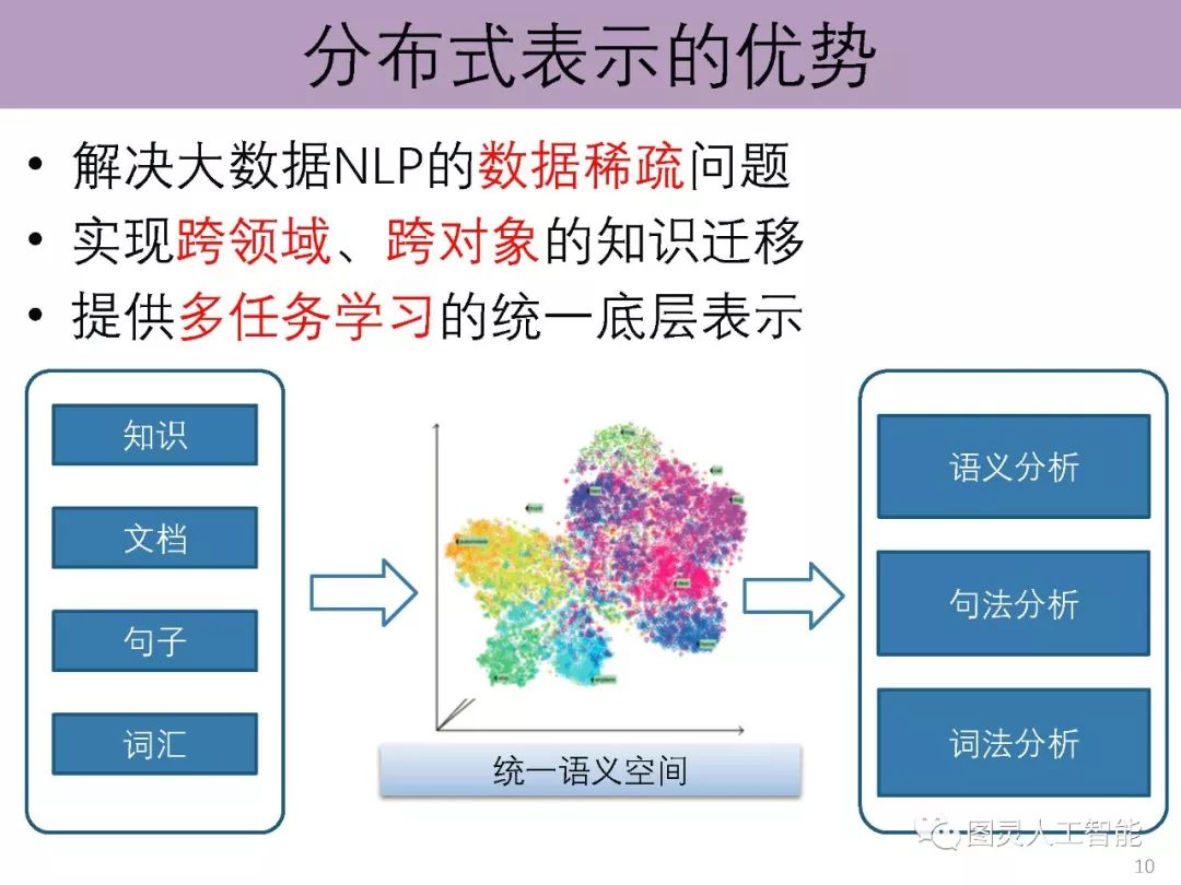 导读:介绍了分布式学习为什么会成为当前深度学习的基本特征,以及如何影响了计算机视觉、自然语言处理和语音识别等无结构信息的处理。报告主要讲授面向自然语言处理的语义表示学习的基本原理与技术,介绍面向汉字、词汇、短语、知识和网络等研究对象的语义表示学习的基本思想,并展望在该方向的主要挑战与前沿方向;并且根据其研究组投稿的情况,给了参会学者非常真实的顶级会议投稿意见,以及未来的研究方向;建议作一些更具有创新性的工作,如他们研究组基于Hownet进行的相关研究。