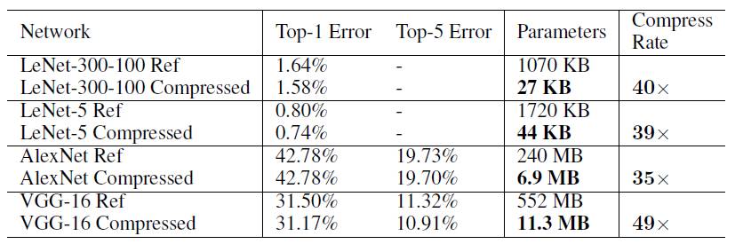 表4 不同网络采用Deep Compression后的压缩率[6]
