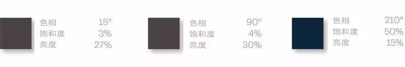这里有三种颜色及其色相、饱和度和亮度值。他们都看起来很暗,彼此间没有大不同: