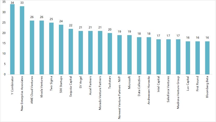 其中,Y Combinator投资了34次包括Sift Science,Chute,Qventus和SimpleLegal在内的25家人工智能企业,其中Sift Science 获得了包括Founder Collective, SV Angel, Y Combinator在内等17家投资方总计3.64亿元投资,而Y Combinator参与投资的其余AI公司获投金额从76万元到1.14亿元不等,轮次也零散分布在天使/种子轮,A轮,B轮和C轮。