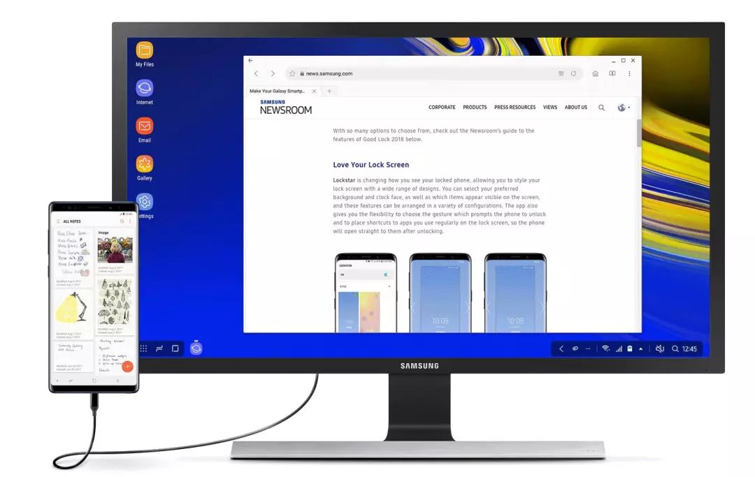 Galaxy Note 9 上的 DeX 获得了重要的升级,现在你不再需要单独的底座,仅需一根 HDMI 线即可以让 Note 9 化身电脑。而手机本身则变成触控板,你可以连接任何你喜欢的蓝牙键盘。