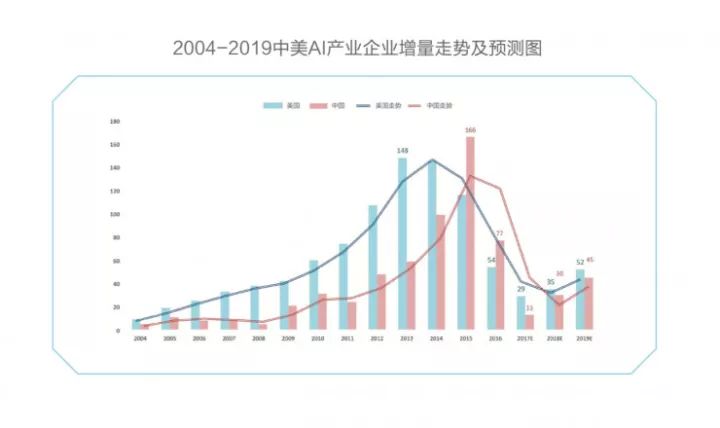 预计在2020年之前,美国累计AI公司数量将会超过1200家,累计融资将达到2000亿人民币;根据历史数据推断,中国在2017年年末达到745亿融资总额。