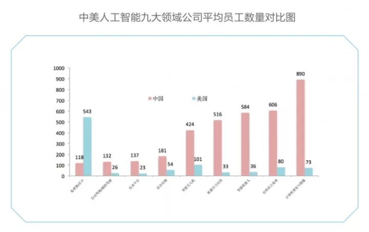 机器学习应用,美国员工人数是中国的1.8倍,美国17600人,中国9800人;