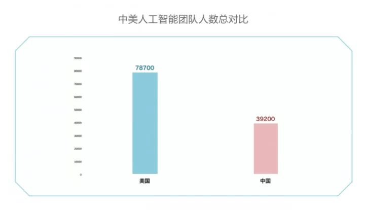 美国1078家人工智能企业约有78700名员工,中国592家公司中约有39200位员工,只有美国的50%。其中,美国基础层人才数量是中国的13.8倍。