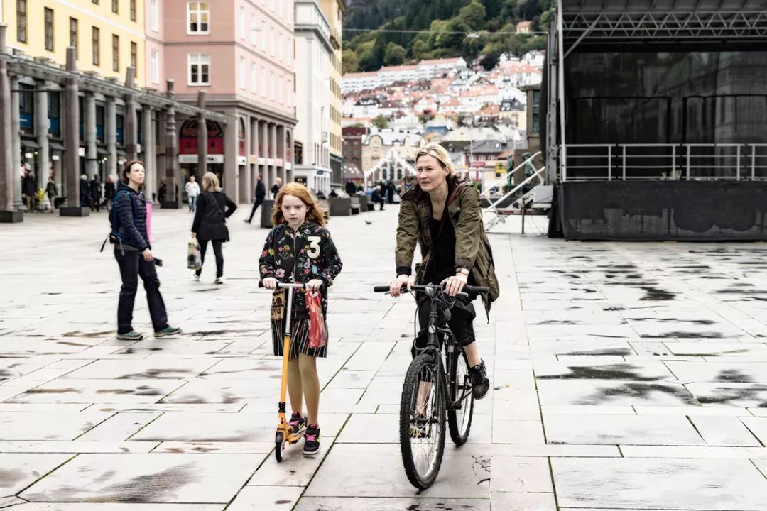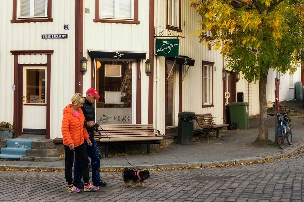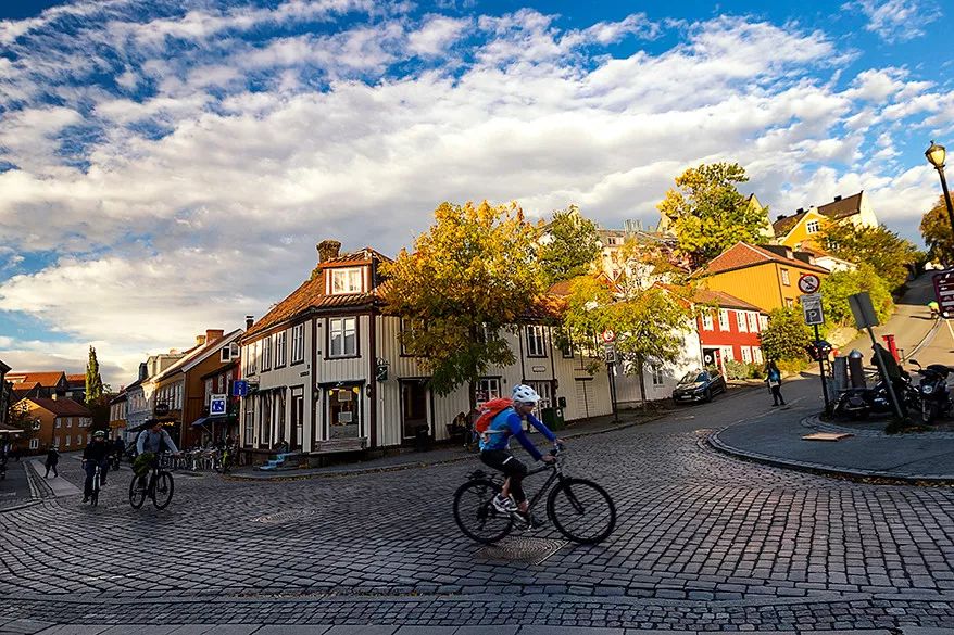 放下行李即出门,沿着运河边往老城方向走,河两岸布满一排排的彩色木板房。尼德河上的老城桥,是拍摄木房子的最佳角度。日落时,天上的云霞不够精彩,但夕阳明亮得足以让彩色木板房饱和度溢出。冷风吹着,暮色中回家的挪威人骑着自行车嗖嗖地掠过。
