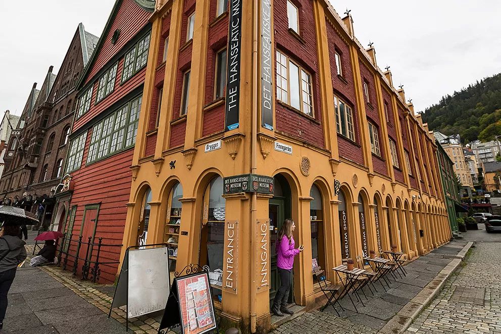 被称为“德国码头”的世界文化遗产木屋群,是城市最古老的部分。十四世纪,卑尔根已经发展成一个重要的贸易中心,仓库里装满了来自挪威北部的鱼和来自欧洲的谷物。挪威人用鱼干、黄油和毛皮与英国人、德国人交易谷类、红酒和蜂蜜。木屋群一层是货仓,二楼是住所,当时这里住着上千人德国商人。