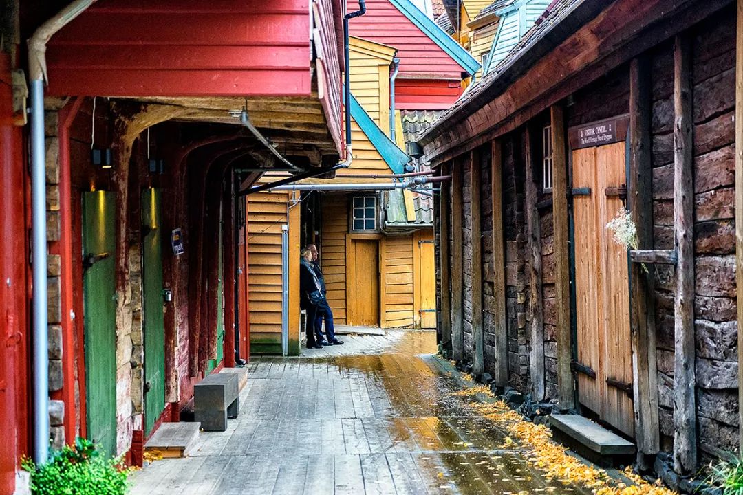 阴雨中,走在圆石铺成的小巷中,卑尔根那旖旎而古朴的魅力格外动人。