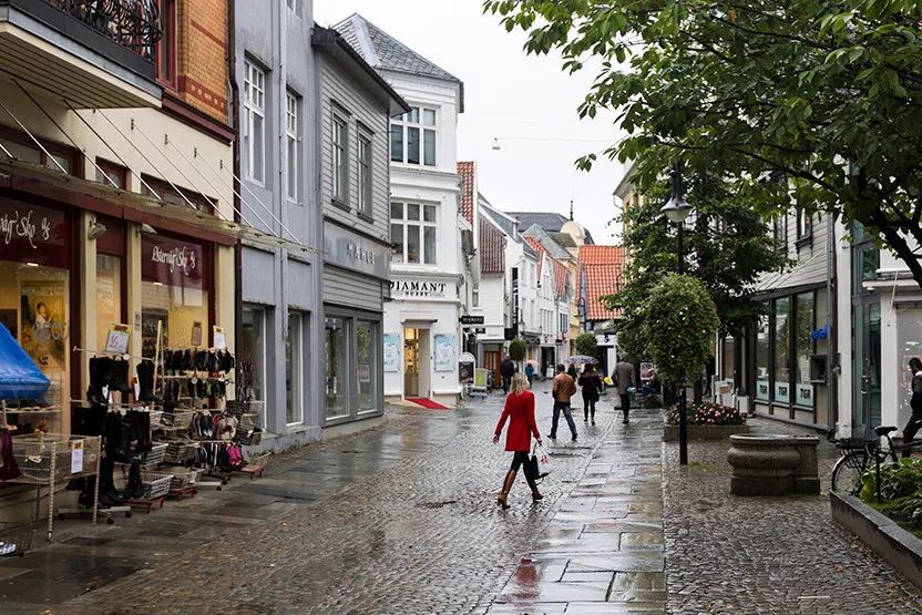 斯塔万格老城位于港口西侧,到处是18世纪的老式建筑,鹅卵石人行道被雨水打湿后,闪亮剔透得像镜面一般。