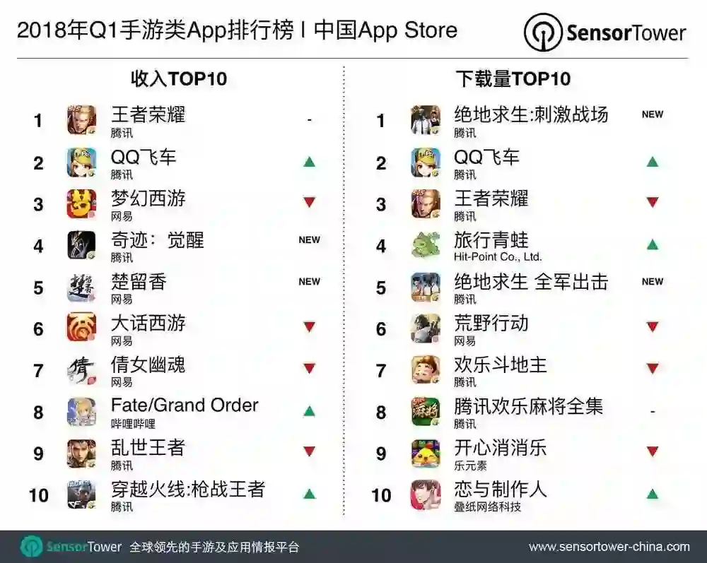 互联网数据研究机构 Sensor Tower 提供给虎嗅的一份数据,统计了 2018 年 Q1 App Store 各个榜单的数据情况,一起来看看新的一年,有哪些新的趋势。