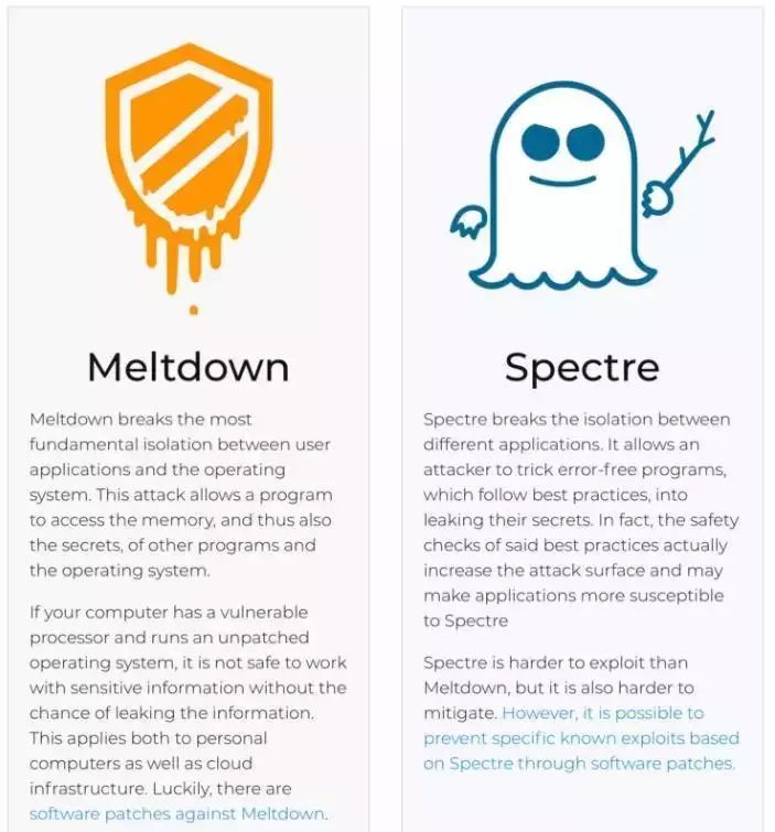这两个漏洞一个是Meltdown,它影响了英特尔的处理器;另一个是Spectre,它影响了英特尔、AMD以及ARM的芯片。