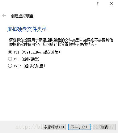 选择默认的 VDI 硬盘文件类型