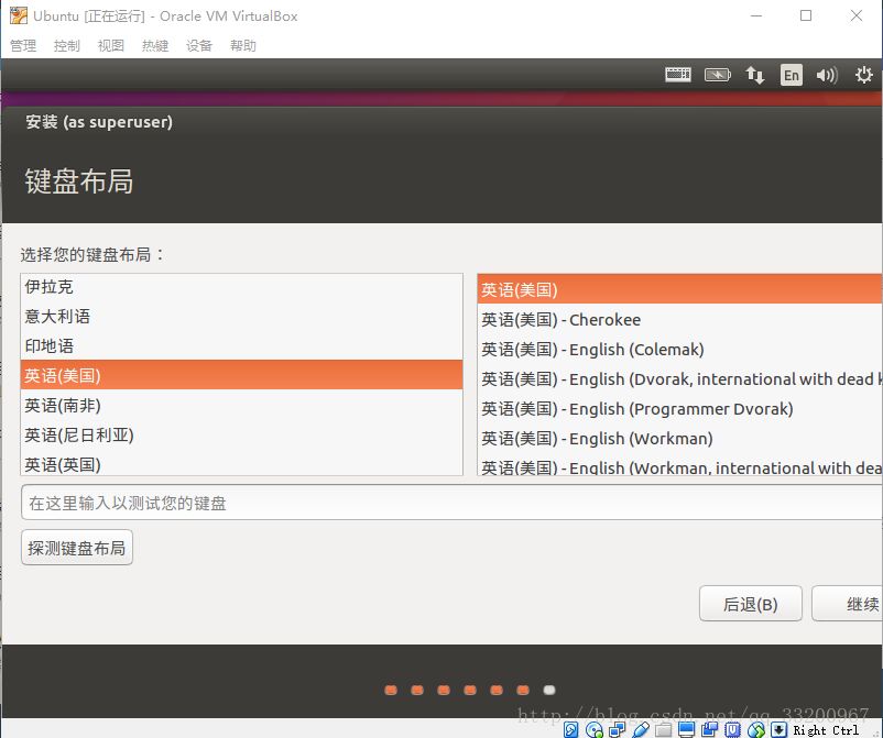 然后是选择键盘的布局,通常的键盘布局都是英语(美国)