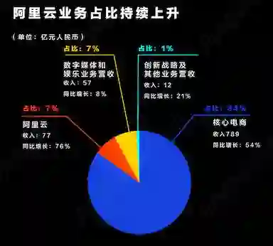 阿里营收增幅最大的板块则是阿里云,2018 年营收 213 亿元,在国内公有云市场份额最大。但目前阿里云营收占比仅为 6%。