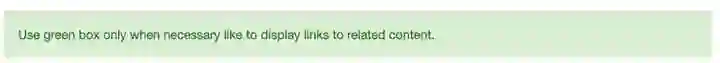 <div class="alert alert-block alert-success">Use green box only when necessary like to display links to related content.</div>