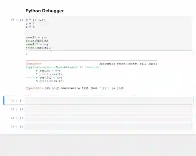 交互式调试器(interactive debugger)也是一个Magic函数,但我必须给它归个类。如果你在运行代码单元出现异常时,可以在新行中键入%debug运行。这将打开一个交互式调试环境,它将您告诉你代码发生异常的位置。你还可以检查程序中分配的变量值,并在此处执行操作。点击q可退出调试器。