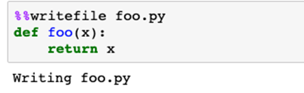 %% writefile将执行单元的内容写入文件。下面的这段代码将写入名为foo.py的文件并保存在当前目录中。