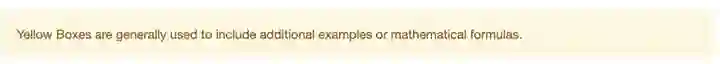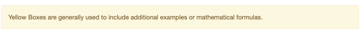 <div class="alert alert-block alert-warning"><b>Example:</b> Yellow Boxes are generally used to include additional examples or mathematical formulas.</div>