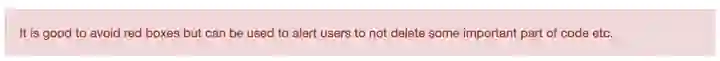 <div class="alert alert-block alert-danger">It is good to avoid red boxes but can be used to alert users to not delete some important part of code etc.</div>