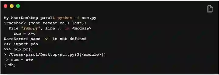其次,我们可以轻松地调用python调试器,因为我们仍然在编译器中: