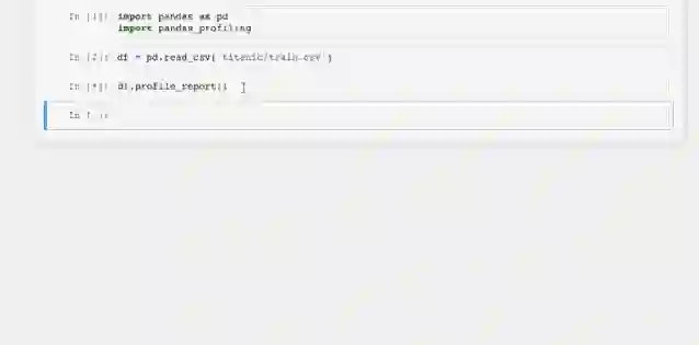 #importing the necessary packagesimport pandas as pd ##使用pandas资源包import pandas_profiling ##使用新安装的pandas profiling资源包df = pd.read_csv('titanic/train.csv') ##读取数据形成数据框pandas_profiling.ProfileReport(df) ##使用pandas profiling分析数据