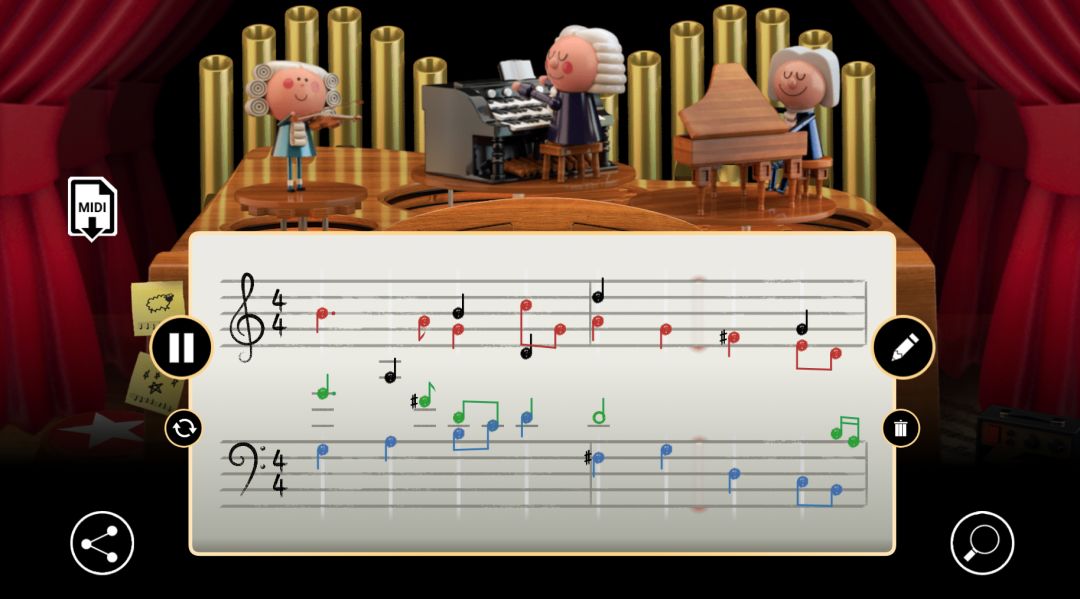 比如你可以输入两小节长的单行旋律,并且改变音乐的音调和节奏,你也可以将生成的作品下载为 MIDI 文件与朋友分享。Google Doodle 还有一些隐藏的惊喜,单击键盘右侧的迷你放大器能使乐器升级为 80 年代的合成器。总之,无论你点击输入怎样稀奇古怪的音符,它都能给你自动匹配出巴赫风格的旋律。