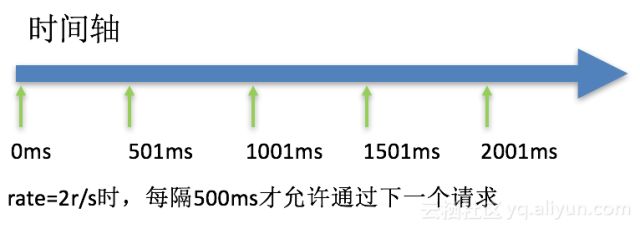 这个算法的核心是:缓存请求、匀速处理、多余的请求直接丢弃。