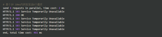 单个IP 10ms内并发发送6个请求,结果如下: