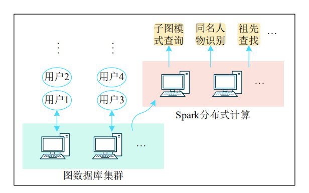针对图数据规模较大、图数据分析与挖掘耗时较长的问题,通过对大数据计算算法和框架的对比研究,华谱系统采用 Spark 分布式计算框架,在上层应用 (如子图模式查询、同名人物识别) 中,利用图划分算法将原始的图数据拆分为多个子图,基于分布式计算并行处理,以节省整体计算时间、 提高计算效率。