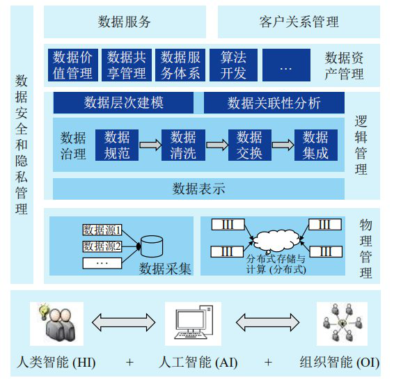 数据中台将一个机构 (企业、事业、或政府部门) 的数据作为战略资产进行管理,是从数据收集到处理应用的一套管理机制, 以期提高数据质量,实现广泛的数据共享,最终实现数据价值最大化。数据中台建设覆盖数据的逻辑管理和物理管理, 逻辑管理包括数据结构的设计和数据之间相关性的分析, 如数据仓库; 物理管理包括数据的存储和检索。