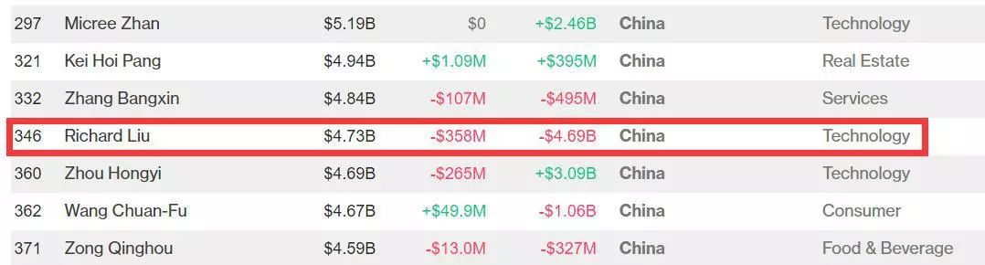 4.刘强东身价跌至47亿美元,年初至今蒸发49.8%