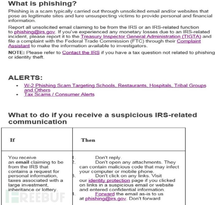 我们发现基于宏的一个Word文档和一个Excel电子表格,其中Word文档是名为“report phishing.doc”的美国国税局(IRS)内容的主题附件,该钓鱼邮件假冒“钓鱼攻击警告”邮件,并以@mail.com地址发送。比较搞笑的是,发件人地址被伪造为phishing@irs.gov,且邮件内容也像是从IRS官网网页复制过来的: