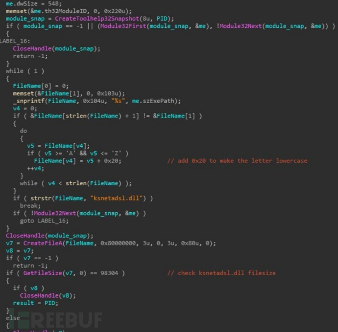 以下为RatankbaPOS的dropper/injector搜索匹配 ksnetadsl.dll的过程: