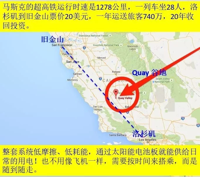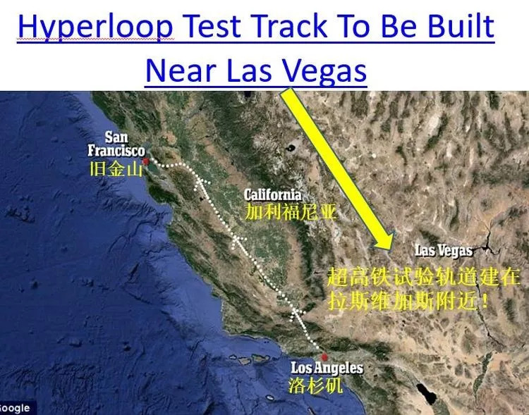 规划中的超级高铁从旧金山到洛杉矶仅需35分钟。先在洛杉矶附近建立超级高铁的试验场。
