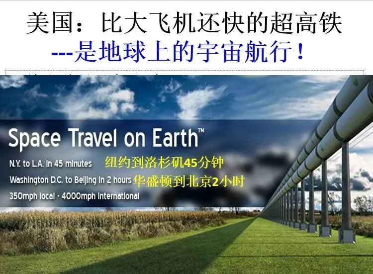 由于管道内部基本上是近似真空状态,所以车辆有很大的提速空间,将来可把超级高铁的运行速度提高到每小时4000公里,这样,从美国华盛顿到北京仅需2小时,而现在的民航飞机需要十几个小时!欢迎关注材料科学与工程微信公众号。