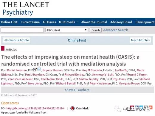 发表在《柳叶刀心理学》一项新研究(点击左下角阅读原文)发现,人们在接受失眠的认知行为疗法(CBT)之后,不但睡眠状况改善了,偏执狂和幻觉的症状(两种精神疾病)也减轻了,而且抑郁和焦虑的状况也得到改善。